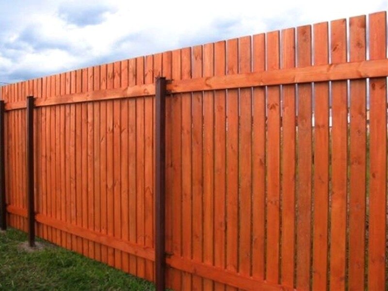 Забор из деревянного штакетника нельзя оставлять без покраски – это нанесёт древесине большой вред. Поэтому после того как дерево привезли на участок, его стоит покрыть эмалью по дереву для наружных работ.