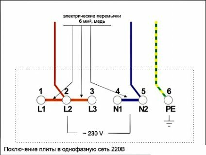 В промежутке между клеммами устанавливаются перемычки из меди, имеющие сечение 6 кв. мм, которые входят в комплект с плитой;